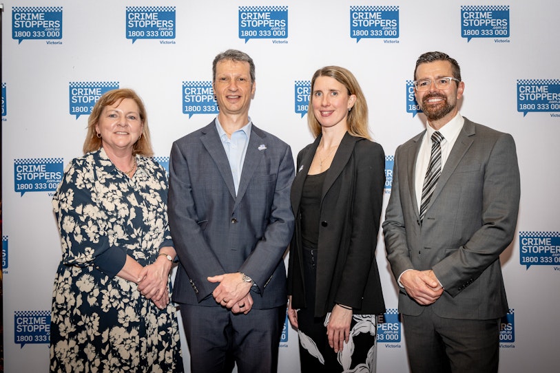 (L-R): Stella Smith, CEO Crime Stoppers Victoria; Anthony De Fazio, CEO BankVic; Rachel Morley, Chief Growth & Experience Officer, BankVic; and Daniel King, Chair Crime Stoppers Victoria.